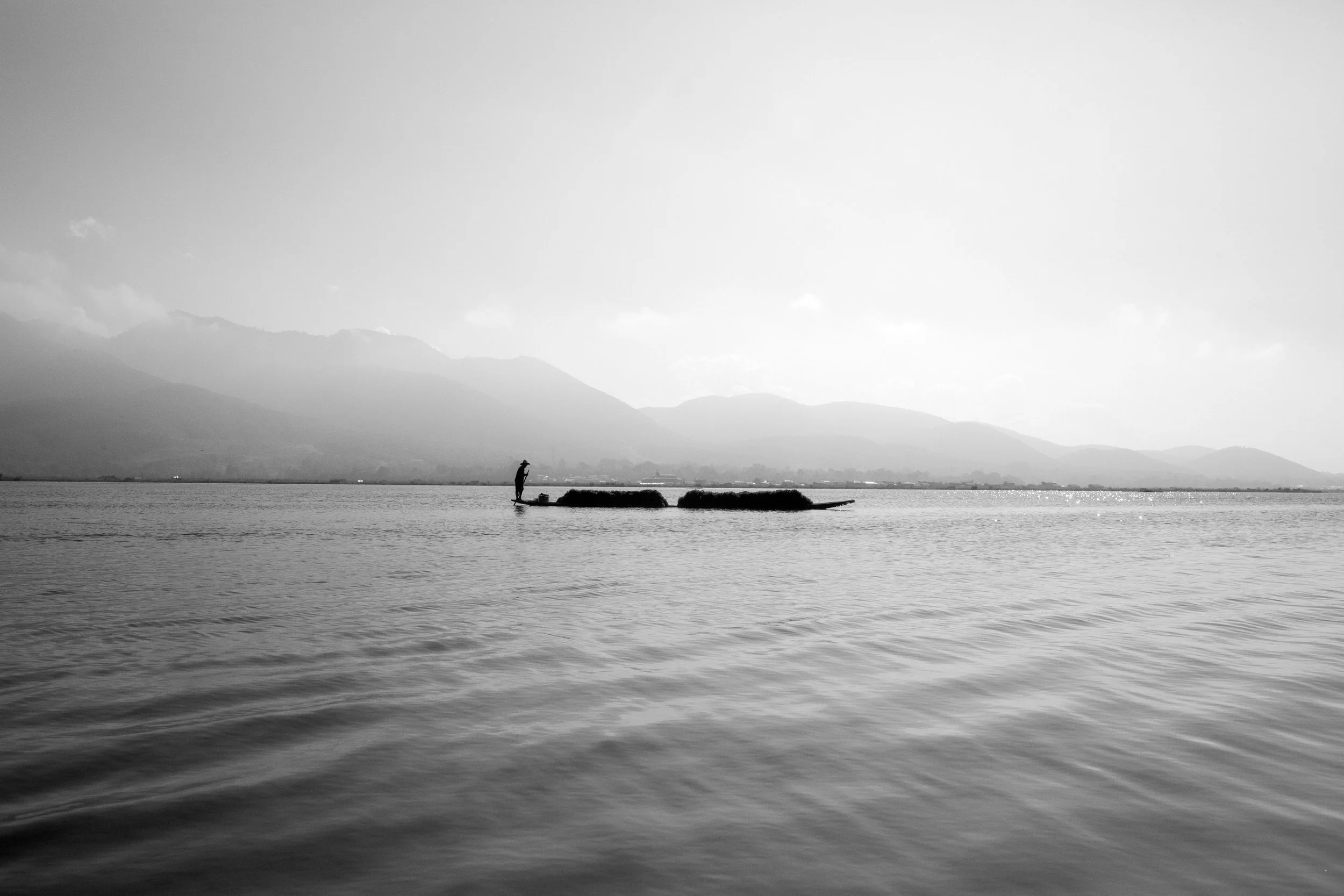 Paisajes, algo tan lejano, efímero, algo capaz de hacerme olvidar todo lo vivido, solo observar, abstraerme de todo, las aguas me apaciguan, me relajan, buscando la belleza en el lejano horizonte, pero sin olvidar la presencia humana, pescadores de aquí y de allá, gentes, vidas, lapsus. De pronto montañas, primeras luces de la mañana, las aguas en calma, solo horizontes.